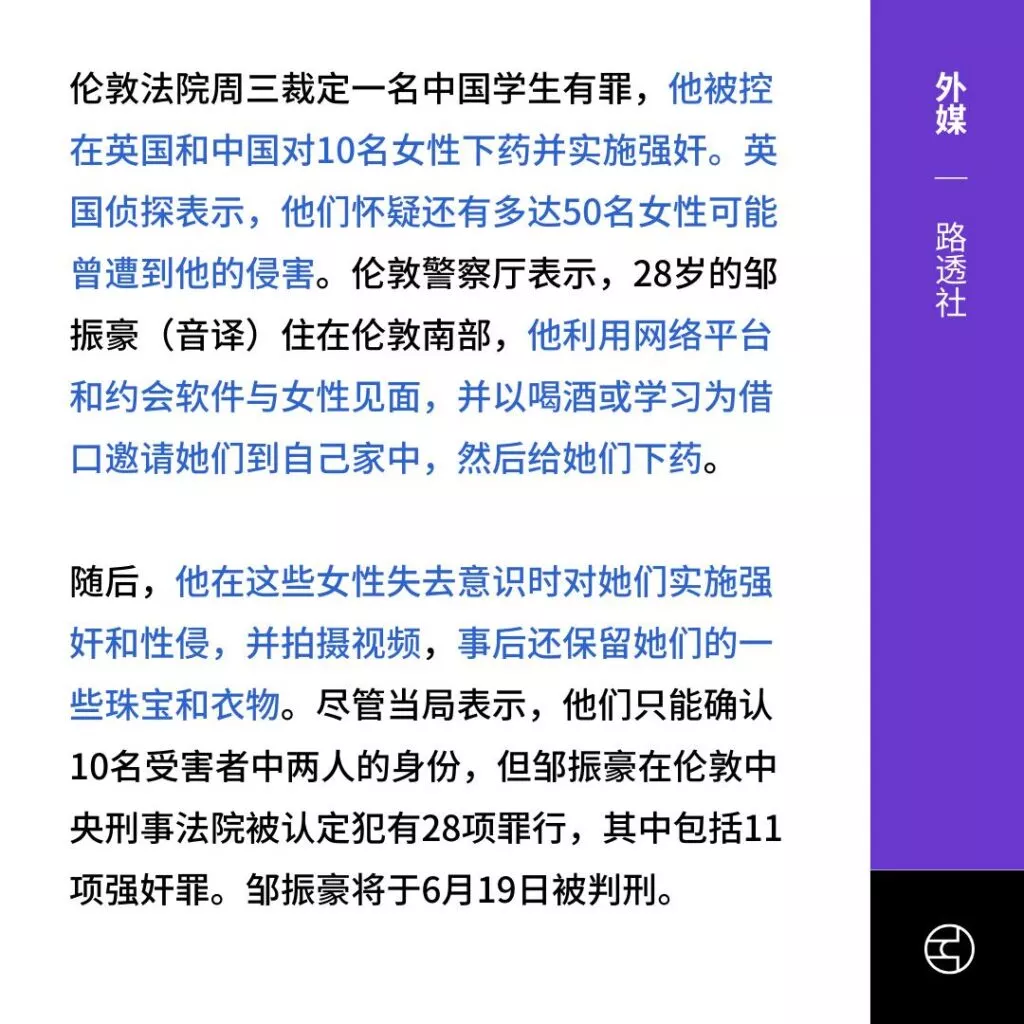 东莞的一名富二代留学生,博士生邹振豪,近日被指控对多名女性实施威胁。多达23位女性提供了证据,控诉这位嫌疑人利用药物使她们失去意识,从而任意Cao控她们。目前此人已经被英国警方逮捕进一步调查,在现场发现大量违禁药品以及偷拍设备。