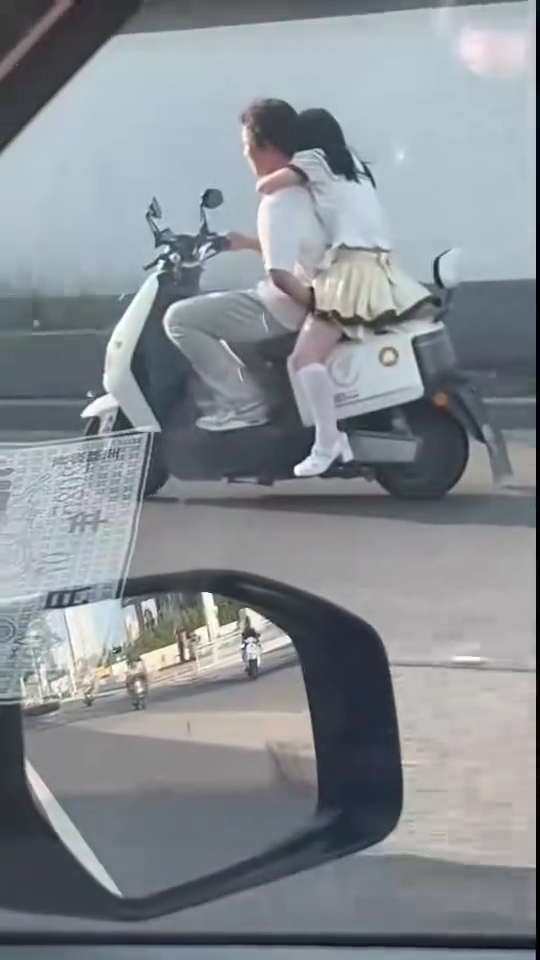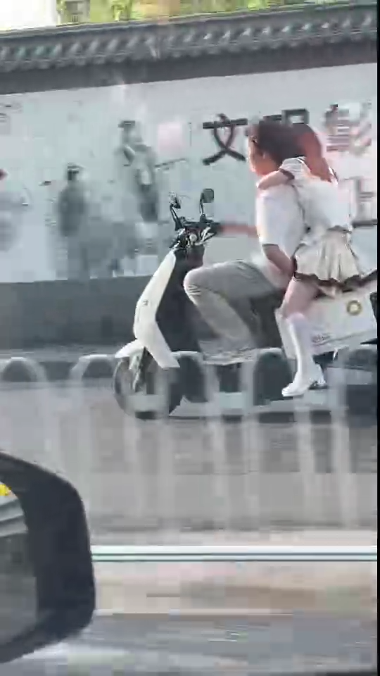 右手油门拧到死,左手向后一键开启运动模式,电动车能玩出来这种花样,一边在道路上飞驰,一边前后互相爱抚分秒必争,除了车速达到顶峰,俩人也是双双进入人生巅峰。