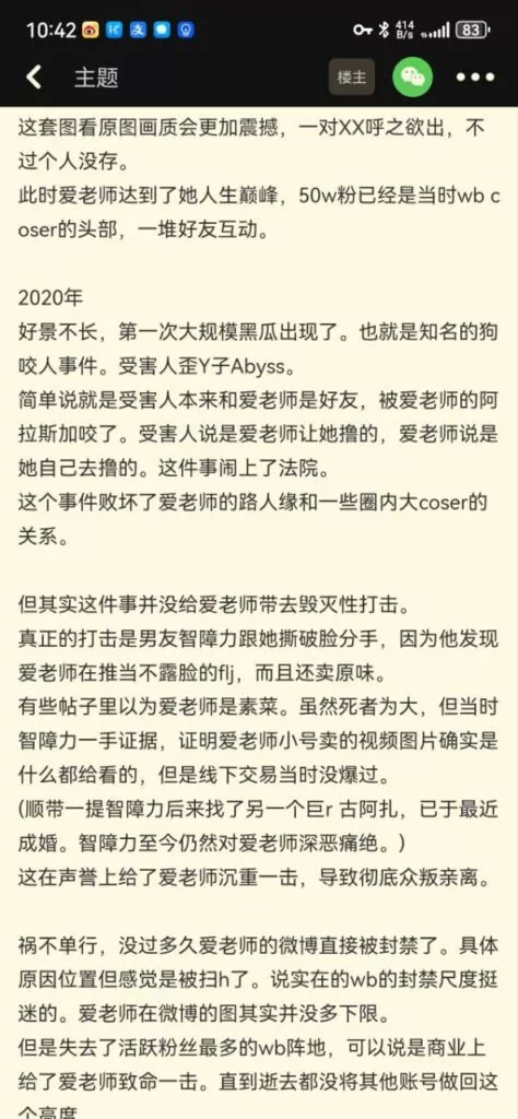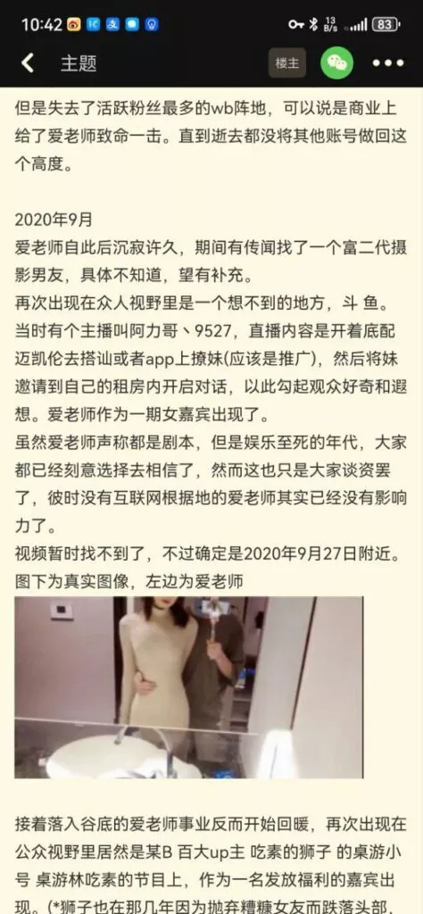 海外平台爱老师就有不下于33万粉丝,国内抖音以及微博粉丝更是不下40万,事业还在上升期的她就此香消陨落。