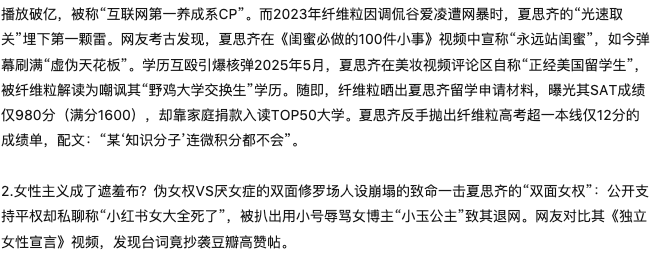 纤维粒的“厌女黑历史”:早年用“婊子”调侃女性运动员,如今却晒《第二性》读书笔记自证“女权进步”。心理学博主分析:“他的道歉像AI生成的道德忏悔录”。