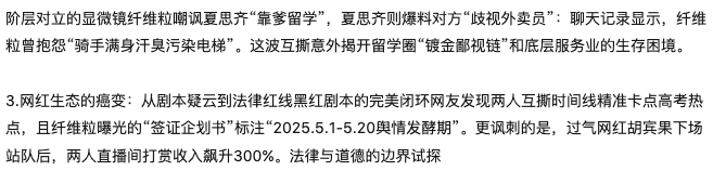 隐私泄露成武器:纤维粒曝光夏思齐就医记录涉嫌违反《个人信息保护法》,而夏思齐公开的聊天截图中未隐去第三方素人信息,或构成网络暴力。商业道德的沦丧:两人合作期间的“种草笔记”被扒出90%为付费推广未标注,涉嫌违反《反不正当竞争法》。