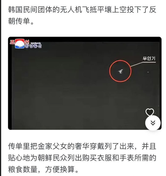 韩国利用无人机向朝鲜散发传单,内容涉及金正恩平日佩戴的百达翡翠丽手表和他女儿的Dior羽绒服的价格。为了确保朝鲜人能够理解,这些传单还附上了这些奢侈品的价格转换成玉米的数量,并且指出韩国一个月的工资大约可以换得在朝鲜出售的粮食量。