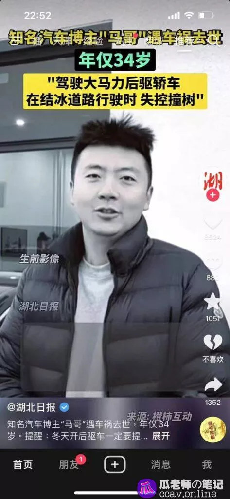 63万粉丝对于这些纯粹靠实力涨粉的博主来说已经算小有所成是很难做的,但他的事业也中止于此了,所以瓜老师善意的提醒一下有车的瓜友们,一定要多多注意路面状况,不超速不危险驾驶遵守交通安全规则