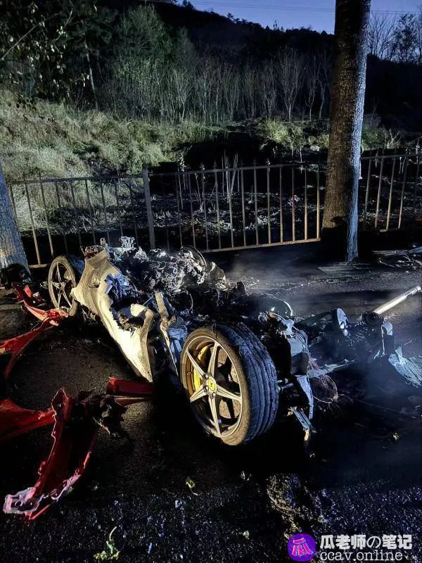 损毁严重的现场,车辆已经燃烧变形,仅仅剩下一个底盘