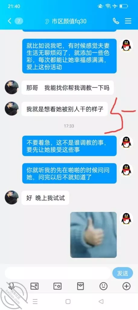 前几天吧,有一个群友加我,说了他的想法,老婆呢属于很搔的类型,但是就是不同意玩,又很感兴趣