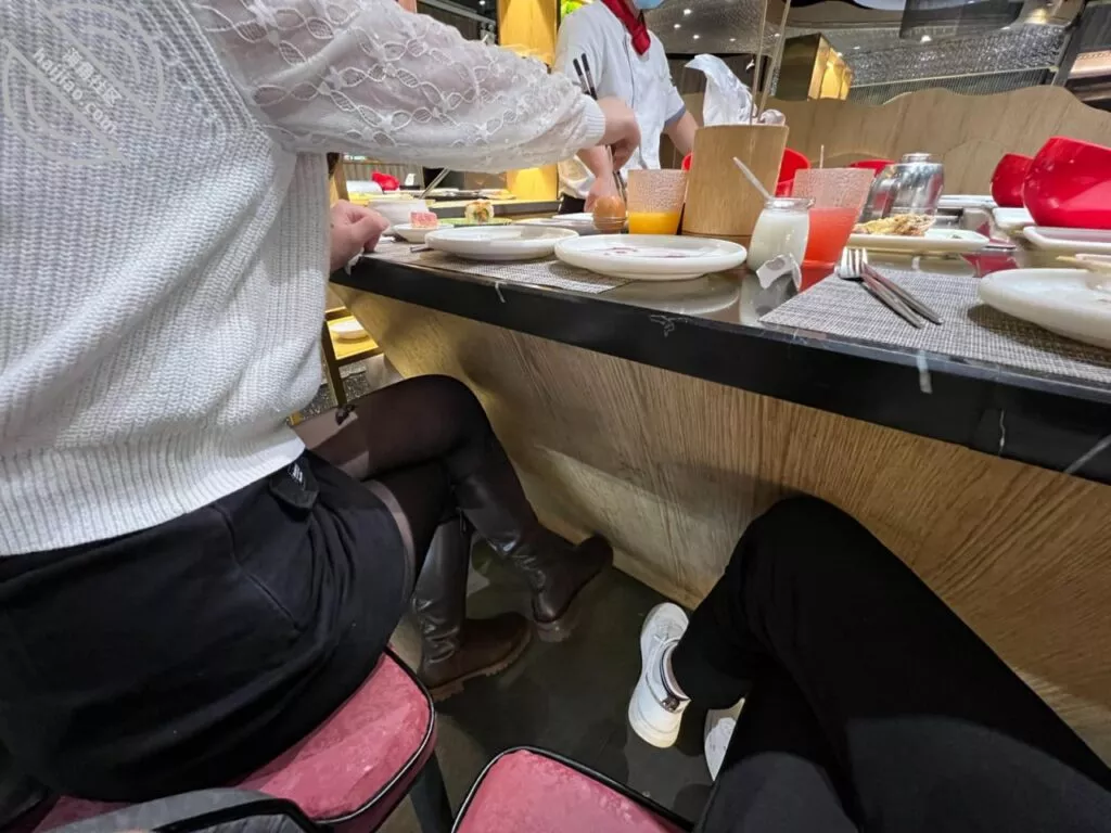 跟海友见到了第一面,人高马大的形象给我带来了第一眼的好感,目测应该1米85 – 1米88,我还在想着这么健硕的体格会不会撑大老婆,这时候海友已经伸手向我握手示意了,反应过来以后便引导我们进了包间,这里环境不错,因为人少我也喜欢僻静,对这些东西没有什么要求,毕竟今天不是奔着吃喝来的,差不多就行