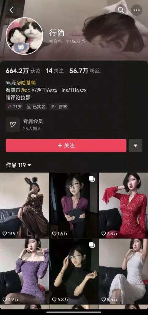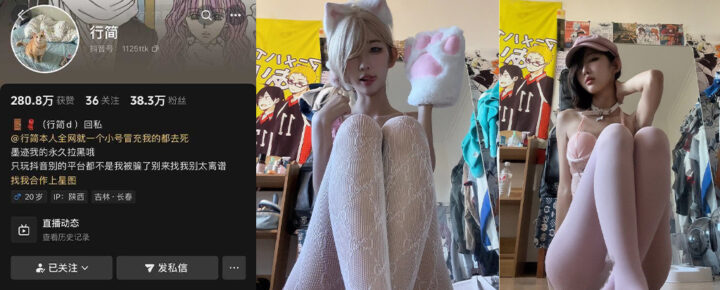 56万粉丝的抖音网红行简因其一双笔直的大长腿和清纯而略带魅惑的外貌,吸引了大量老司机纷纷拜倒在她的裙下。而其私拍的大胆自拍视频也相继流出。
