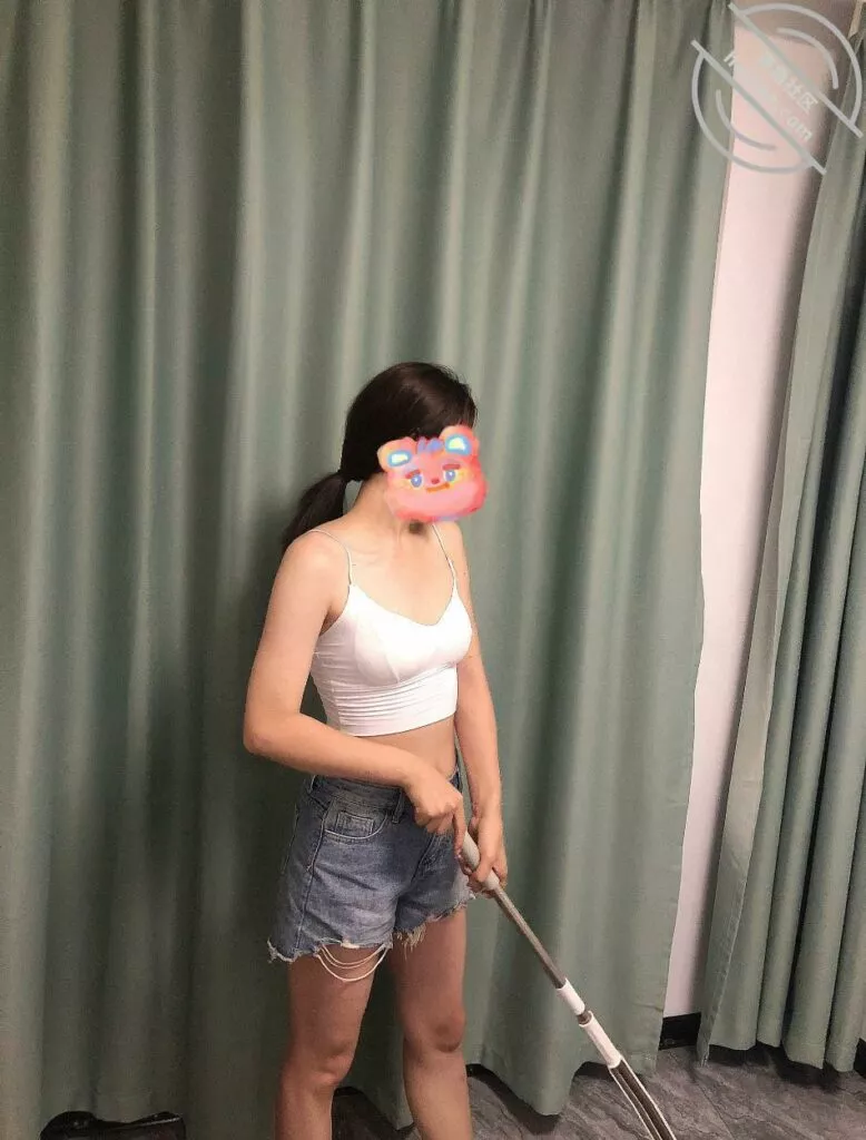 踩完点我正在苦思冥想怎样制造机会的时候,没想到机会就自己来了,姐姐竟然拿起拖把开始拖地了
