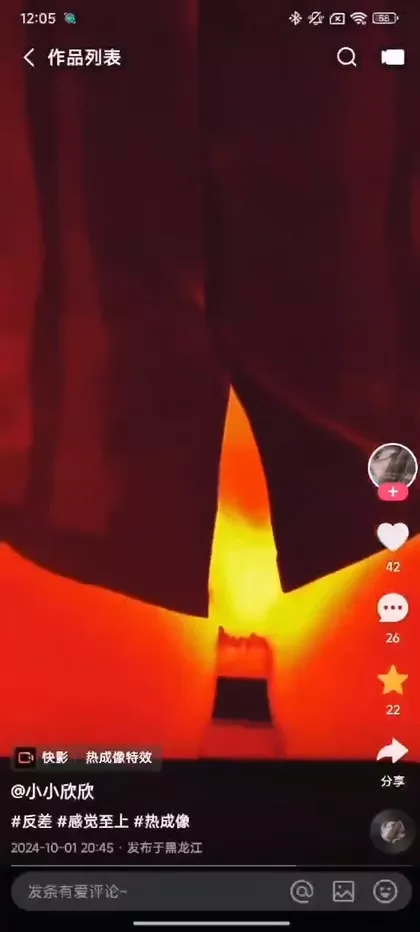 快手擦边博主小小欣欣,开辟擦边新赛道,利用快手热成像滤镜,直接把镜头怼到自己的私处,在镜头前展示。只能说这些女主播们,为了能获取流量,真的是无所不用其极,脑子里的鬼点子也是越来越抽象。