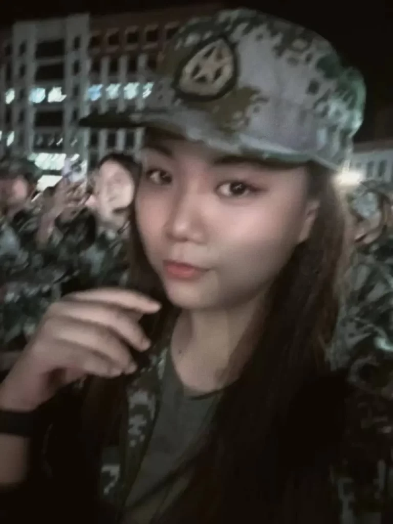 看军训服有点不像,也可能是灯光原因