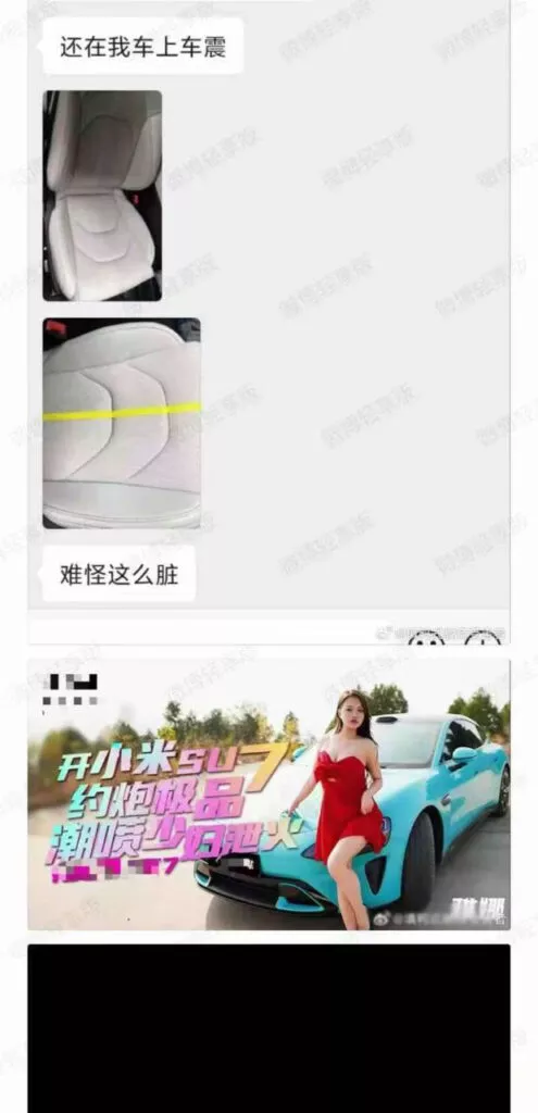 小米SU7车主经历了一件让人无奈的事情:他将自己的爱车借给朋友的租车公司应急使用,没想到这辆车竟然被租用于拍摄诱惑影片。起初,他以为车子只是作为背景道具,没想到女主角和男主角竟然在车内发生了亲密关系,甚至在高点时将车内弄得一片狼藉,真是让人无法接受,这辆车变得如此脏乱!