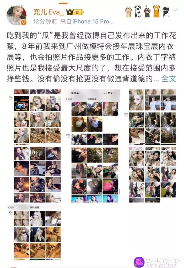 近日,微博上掀起了一场关于有120万粉丝的网红兜儿Eva_的热议。这场风波起源于兜儿Eva_的一组外围照片被网友曝光,这些照片迅速在社交媒体上引起了广泛关注和讨论。在当今社交媒体时代,名人和网红的私生活常常成为公众关注的焦点,而此次事件无疑成为了最新的热点。