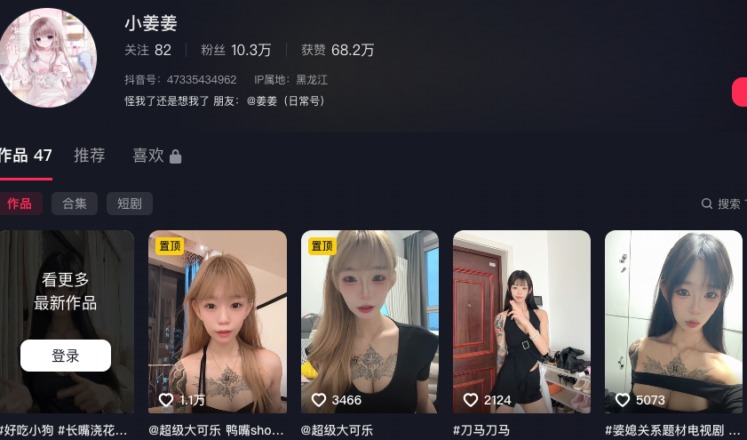 抖音粉丝约10万的网红“小姜姜”,以精神小妹的风格和醒目的纹身吸引了大量关注。她表面看起来略显叛逆,事实上更为大胆。近日,据传其高价定制的私密视频被曝光,引发广泛讨论。