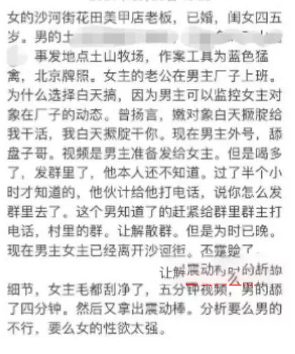 在湖南长沙沙河街的一家美甲店,店主与其丈夫的上司之间发生了不正当关系。令人意外的是,他们在车内拍摄的小视频意外地被发送到了工作群中。这一事件迅速揭示了这位背叛婚姻女性的真实面貌,令周围的人们对她的行为感到震惊。