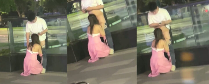 又让你得吃了!重庆新光天地步行街人行道上演情侣口爱裤子都脱了